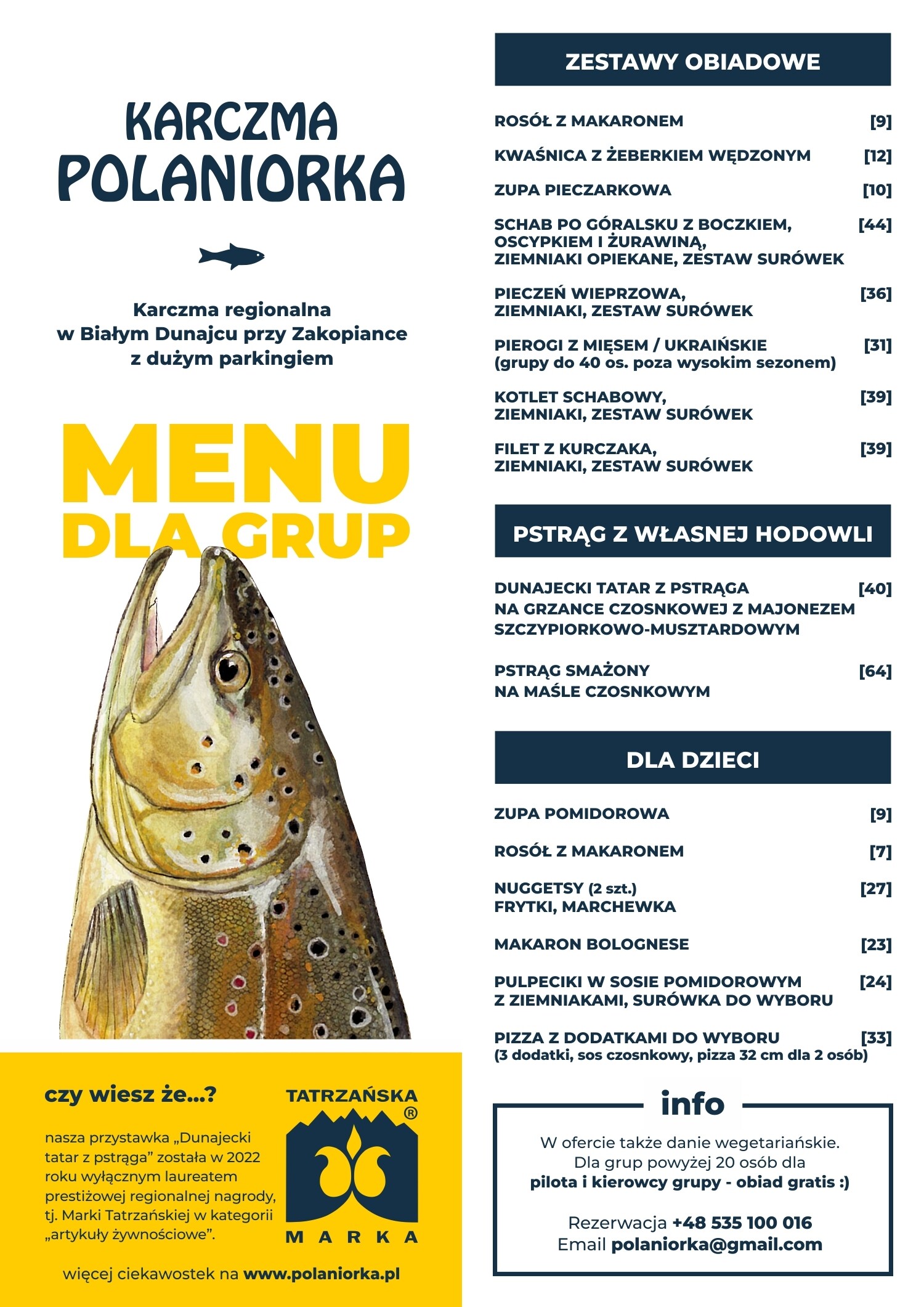 W przypadku gdy liczba uczestników przekracza 20 osób, obiad dla kierowcy oraz opiekuna grupy gratis :)
